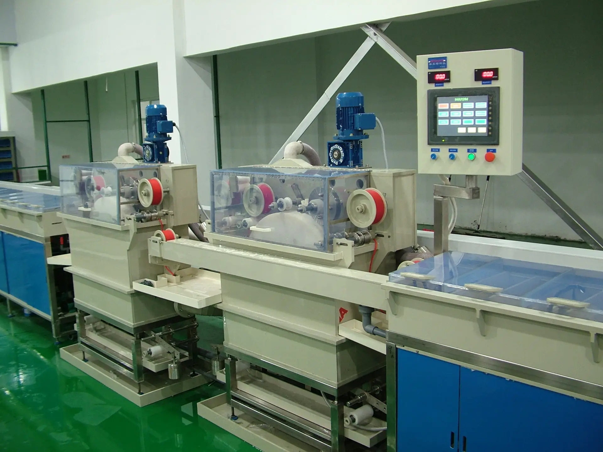 半自動電鍍生產(chǎn)線適用于針對精密電子、小五金件的成批生產(chǎn)及大量生產(chǎn),產(chǎn)值大,經(jīng)濟效益好。該電鍍生產(chǎn)線是在生產(chǎn)線上設(shè)導(dǎo)軌,行車在導(dǎo)軌上運行從而輸送控件在鍍槽中進行加工,工人手控行車電鈕進行操作,半自動電鍍生產(chǎn)線在設(shè)計時已經(jīng)計算好行車及掛鉤的運行速度、工件數(shù)量及面積、生產(chǎn)節(jié)拍以及工藝參數(shù),因此生產(chǎn)的產(chǎn)品質(zhì)量穩(wěn)定,一致性好,產(chǎn)量大,設(shè)計負荷系數(shù)高!半自動線由于變通性強,而又有較高效率和產(chǎn)能,因此是電鍍生產(chǎn)線中的主流設(shè)備。
