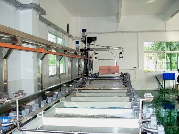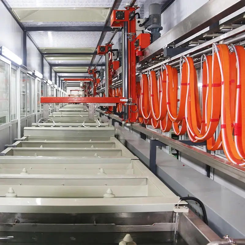 單臂式電鍍自動生產(chǎn)線是一種高度自動化的電鍍設(shè)備,廣泛應(yīng)用于工業(yè)生產(chǎn)中金展表面的電鍍處理。本文將從生產(chǎn)線設(shè)計、自動控制技術(shù)、電鍍化學(xué)反應(yīng)、電源與電流控制、溶液過濾與溫度控制、產(chǎn)品檢測與質(zhì)量保證、鍍層厚度控制、廢液處理與環(huán)保等方面,詳細介紹單青式電鍍自動生產(chǎn)線的生產(chǎn)工藝及特點