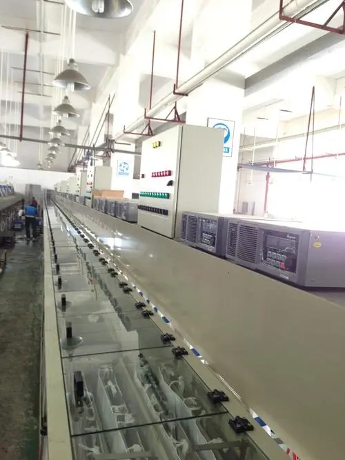 2.掛鍍:將待電鍍工件是掛于手動(dòng)生產(chǎn)線上的掛具上,然后送入電鍍槽中進(jìn)行電鍍